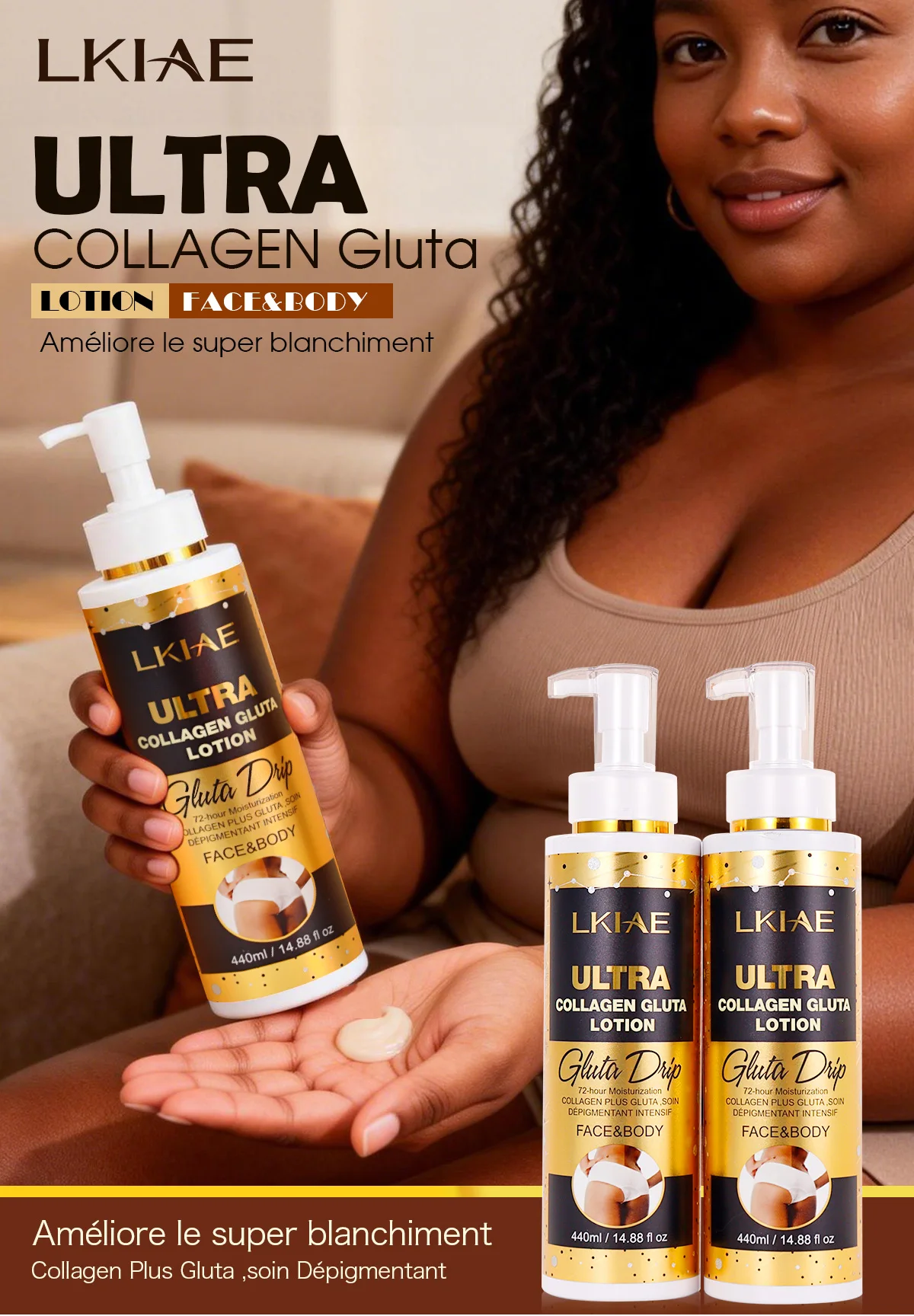 LKIAE Ultra Collagen and Glutathione Whitening Lotion, 440ml